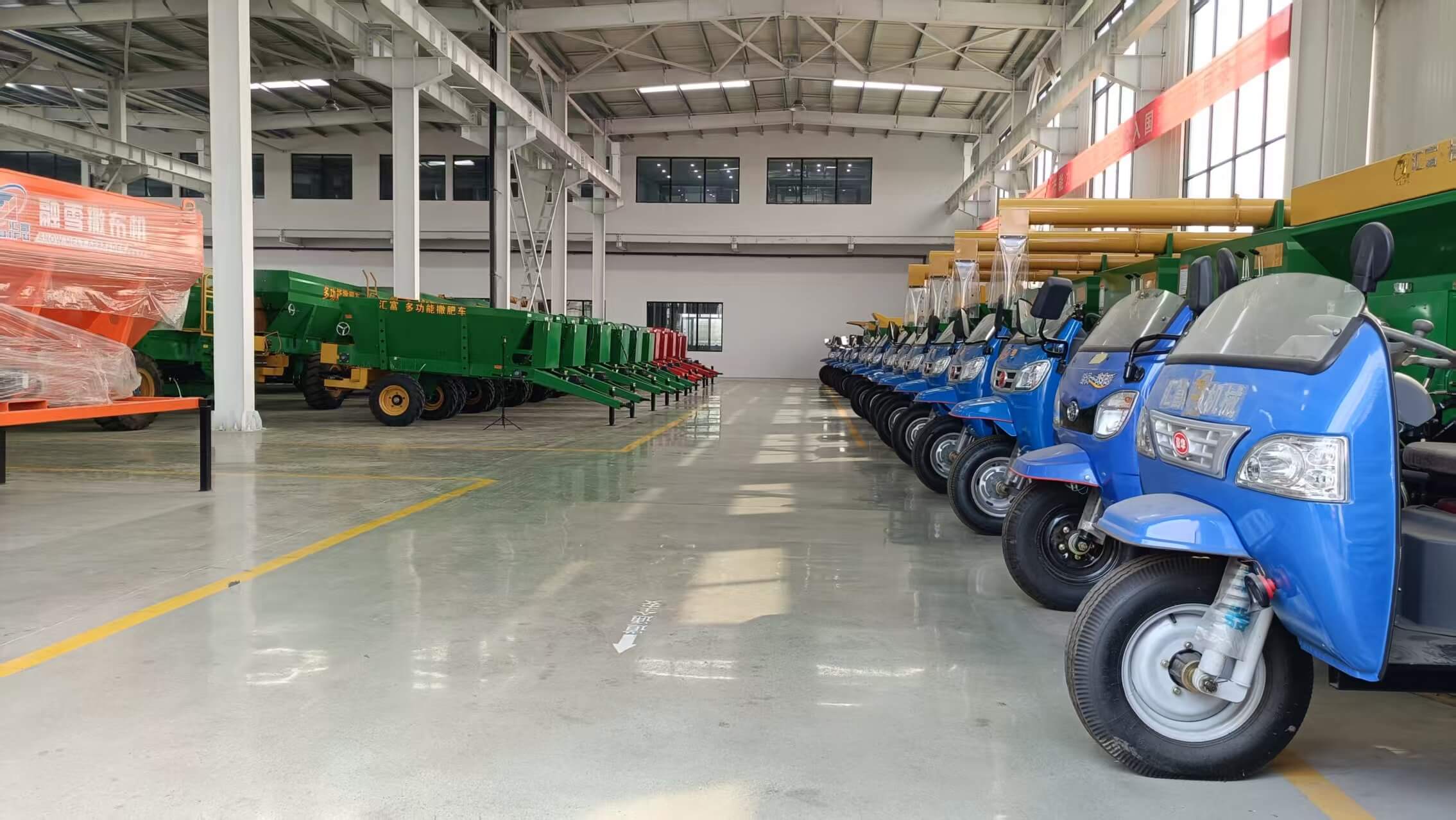 Huifu's machinery products are included in the national catalog of agricultural machinery supported for promotion. The company primarily produces solid and liquid fertilizer spreaders, manure spreaders, slurry tankers, tow behind manure spreader, self propelled manure spreader, compost spreaders, grain cart, chaser bin, road binder spreader, maize threshers, 3 point hitched fertilizer spreader, feed spreaders, TMR feed mixers, salt spreader, double vertical auger manure spreaders, double disc manure spreaders, and other products. Some products are exported to countries like Russia, Malaysia, and Laos. The products are well-regarded both within the industry and by users.
