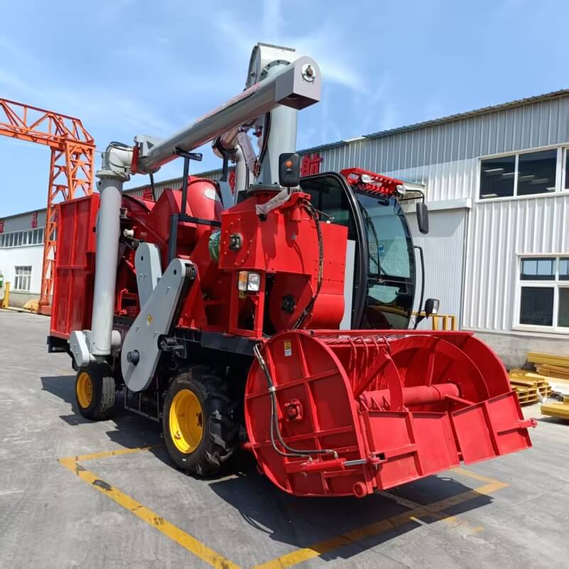 Trituradora autopropulsada de cinco ejes con autosucción: El modelo 2025 está equipado con motores Xichai Sida de 120 caballos de fuerza o Anhui Quanchai de 130 caballos de fuerza, capaces de trillar aproximadamente 20.000 kg por hora. Adopta dos métodos de alimentación: succión eólica y pala frontal en espiral. Cuenta con una cabina completamente cerrada, tambor de succión telescópico, descarga hidráulica de alto nivel con rotación de 360° y una tolva de mazorcas de maíz ampliada.