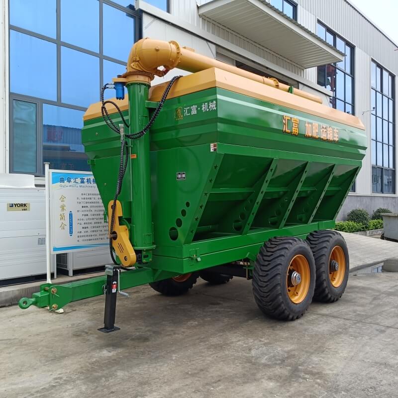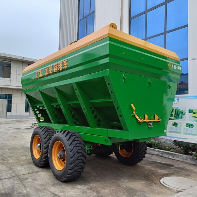 • Función de fertilización: Algunos silos de grano tienen un disco giratorio en la parte trasera, que se puede utilizar para la operación de fertilización a través del control hidráulico. El rango de fertilización se puede ajustar y algunos también tienen un dispositivo esparcidor de doble disco con un ancho ajustable de cuatro a quince metros.